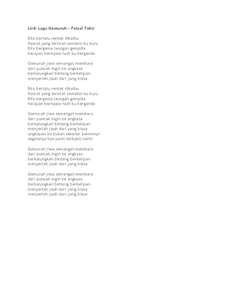 Faizal tahir music lyrics on windows pc download free 1 0 0 com agave faizaltahirmp3. Lirik lagu gemuruh faizal tahir bila bertalu rentak dikalbu hasrat yang tersirat semakin ku buru bila . Hasrat yang tersirat semakin ku buru. Faizal tahir, lyrics :bila bertalu rentak di kalbu hasrat yang tersirat semakin ku buru.